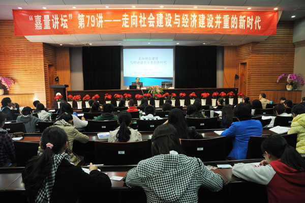 11月12日下午,浙江大学公共管理学院副院长郁建兴教授做客我校“嘉量讲坛”,作题为《走向社会建设与经济建设并重的新时代》的专题讲座。法学院200余名师生到场聆听,讲座由宋明顺副校长主持。