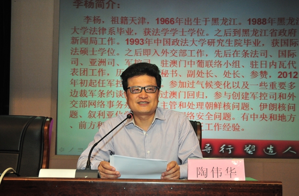 5月23日,外交部军控司李杨副司长再次来到“嘉量讲坛”,为我校师生作题为“中国文化和中国外交”的专题讲座。讲座由校党委副书记陶伟华主持。