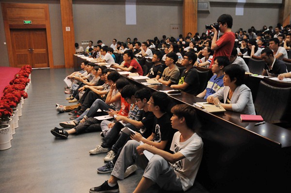 道觉老师富有激情、风趣幽默的演讲,将国学经典与生活实践巧妙结合,发人深省。讲座伊始,他用一张婴儿纯真笑容的图片作为开端,阐述了心中道的最高境界——“复归婴儿”。道觉老师说,大道必然是简单的。“常德不离,复归于婴儿”,人在出生的时候思想是最单纯美好的,然而在成长过程中一个人的思想因为周遭环境的影响日趋复杂,若想实现真正的“得道”,就需放下一切杂念,秉持“随喜”的人生态度,实现天人合一,融入所在的环境当中。“唯有化繁就简,方能举重若轻。”在他眼中,平凡无趣的人喜欢自寻烦恼,把简单的问题复杂化;而圣人则会把复杂的问题简单化,用婴儿般的眼光看整个世界。“大道至简,殊途归一”,道觉老师将学习道德经解释为一个知道、行道、悟道、布道,最终得道的过程。