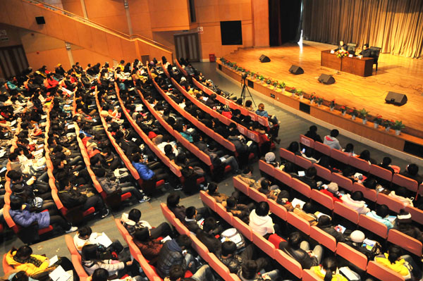 在之后的互动环节,同学们就大学生如何跨专业学习,如何找到科学与政治间的平衡点,如何看待现行的考试制度等踊跃提问,王渝生教授一一给予了详细解答。整个会场气氛轻松活跃,鼓掌声、欢笑声不断。