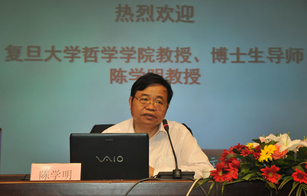 在讲座中,陈教授以日本地震、印尼海啸等事件为切入点,引出当今世界日益严峻的生态问题。陈教授列举了当今社会针对生态问题的三种思潮,并进行了一一解读。他认为要解决当下存在的问题,只有一种出路,即社会主义制度战胜资本主义制度。陈教授进一步指出,作为一个社会主义制度的国家,中国应走一条以生态为导向的现代化道路。对于走这条道路所要面临的四个难题,陈教授认为根本的解决办法就是在中国社会中探索出一种新的生活方式,这就要求我们要提高自身境界,拥有类本位和集体本位的观点和思维方式。