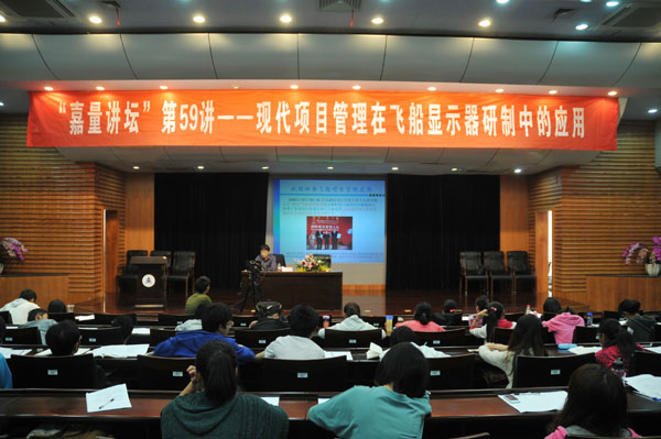 讲座中,夏显忠给同学们详细讲述了项目管理的起源和意义。他指出,项目与日常生活紧密联系在一起,项目管理无处不在,做一个好的项目关键是要掌握好进度、质量和成本的最佳平衡点,争取完成项目的周期比竞争对手短一点、质量高一点,成本低一点。夏显忠对项目管理中的人、时间、成本、技术、质量、流程、利益相关者等7个因素进行了逐一分析,指出让利益相关者都得到满意是项目取得成功的重要标志。对于毕业后如何能尽快胜任项目管理的工作,夏显忠给同学们支招,希望同学们要在项目管理的范围、进度、成本、质量、人力资源、风险、沟通、采购及合同、项目综合管理这八大要素进行平衡,做好项目的启动流程、计划流程、实施流程、控制流程和收尾流程从而将项目做好。在谈到自己擅长的现代项目管理在飞船显示器研制中的应用时,夏显忠给同学们展示了神州七号飞船显示屏的图片,介绍了飞船仪表显示的项目管理、现代军工项目管理、以及江苏捷诚公司的军工项目管理。