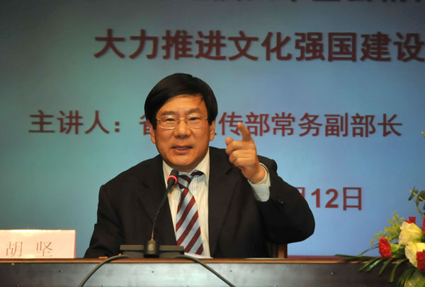 报告会上,胡坚围绕“怎样认识十七届六中全会的意义”、“怎样把握十七届六中全会的基本精神”、“怎样落实当前文化改革发展的重要任务”三个方面进行了辅导宣讲。在谈到怎样认识六中全会的意义时,胡坚强调,学习六中全会精神,要以新的眼光看文化,要从五个方面进一步提高认识,转变观念。他对文化的六个形态、五大作用和六大特征进行了深刻的解读,指出文化是当前发展的重大主题,六中全会体现了党在文化问题上的高度自觉和自信,为党的十八大召开奠定了思想和文化基础。在分析如何把握六中全会的基本精神时,胡坚指出,把握六中全会主题就是要坚持社会主义文化发展道路,实现社会主义文化强国。他强调把握六中全会精神要关注五个问题:即准确把握文化改革发展的巨大成就,准确把握文化改革发展的机遇与挑战,准确把握改革发展的指导思想和重要方针,准确把握坚持中国特色社会主义文化发展道路的重要内涵,准确把握文化改革发展的目标与前景。在报告的最后部分,胡坚结合六中全会提出的推进社会主义核心价值体系建设,为人民群众提供更多更好的精神食粮,大力发展公益性文化事业,加快文化产业发展,深化文化体制改革,建设宏大的文化人才队伍等六大任务,对浙江省文化建设的十大重点任务进行了阐述。