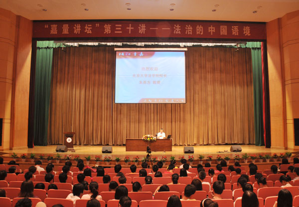 6月1日晚18:30,北京大学法学院院长朱苏力教授在嘉量大会堂为我校师生带来了一场以“法治在中国的语境”为主题的讲座。这也是我校嘉量讲坛的第三十讲。