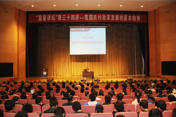 3月22日晚,嘉量大会堂人头攒动,座无虚席。作为本学期嘉量讲坛的首场讲座、09级学生形势与政策课程的课外讲座,浙江省农业厅经营管理处处长童日晖为1000余名学生带来了题为《我国农村改革发展的基本趋势》的精彩演讲,给同学们上了生动的一课。