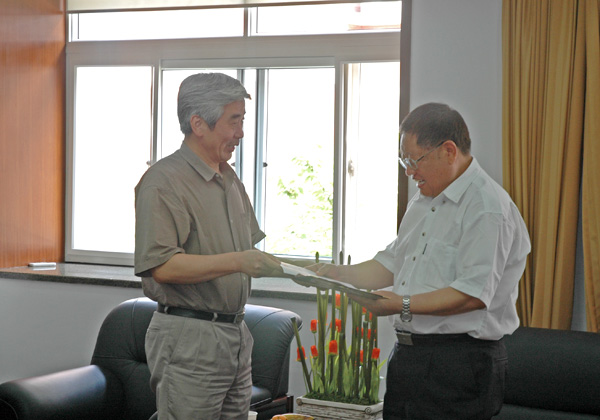 在报告开始之前,王秦平还在徐涌金副书记的陪同下参观了校园,并受聘为我校的名誉教授。