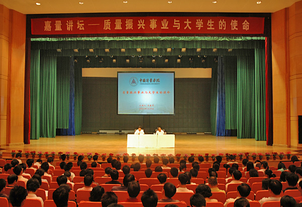 据悉,为了丰富以“计量立校、标准立人、质量立业”办学理念和“精思国计、细量民生”校训为核心的量院精神和量院文化的内涵,强化质量监督检验检疫相关学科专业特色和培养具有牢固质量观念、明确质量意识、较强计量能力的质量振兴事业高素质人才的人才培养特色,学校从今年开始设立“嘉量讲坛”,今后将陆续请到各领域的专家、学者来我校开坛讲座,以深化我校学生科学精神和人文精神培养,以及科学素质与人文素质的教育。