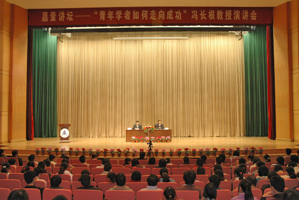 冯长根教授以《青年学者如何走向成功》为题展开报告。他从自身的人生经历和从事科学研究的实践出发,为我校师生生动讲述了他本人在科研人生道路上深刻的感受、体会,以及获取成功的宝贵经验。冯教授强调,在科学研究的道路上获得成功不是一蹴而就的,热爱科学要从开局就抓紧,即从一开始就要有所规划,不断积累信心、力量和智慧,不断增加思考,这些都是帮助大家走向成功的钥匙。他还指出,要在科学研究的领域有所贡献、有所成就首先要成为一个开放系统,即一个与外界有能量交换和信息交换的系统。要形成一个开放系统必须重视收集和获取大量有用的信息,并且多做良好的交流,同时,要使自己成为一个好的作者。最后,冯长根教授希望量院的师生都能够像雄鹰一般展翅翱翔在科学的天空。