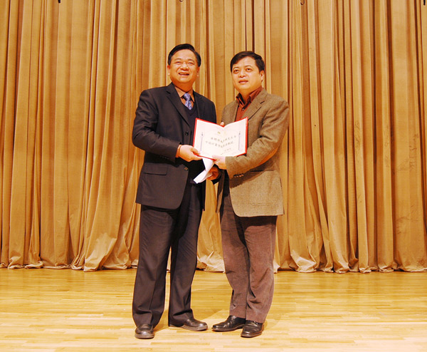 演讲开始前,举行了简短而隆重的聘任仪式,聘请南存辉先生为我校的客座教授。副校长冯时林为南存辉先生颁发了聘书并佩戴上中国计量学院校徽。作为本次嘉量讲坛主办方之一的《浙商》杂志社主编朱仁华先生发表了热情洋溢的致辞,用很有能力,非常有骨气和有情有义这三句话对这位企业家给予了高度评价,并预祝演讲会取得成功。