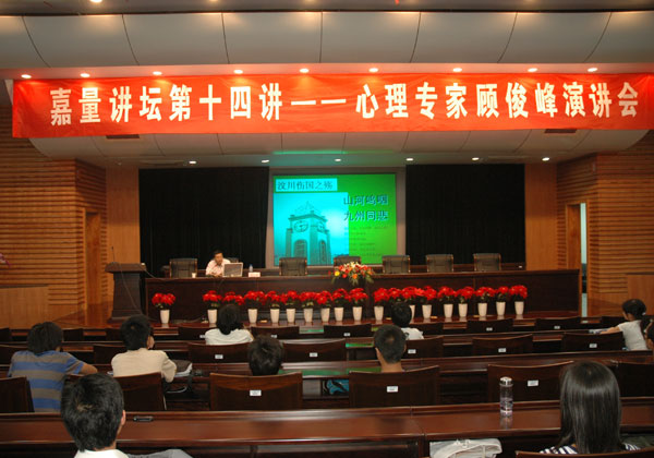 面对灾难,我们该怎么做?在经历了5•12汶川大地震这场重大灾难后,每个人的心里也许都会产生这样的疑问。6月5日晚,国内医学专业资深培训师、心理学专业咨询师顾俊峰老师走进我校“嘉量讲坛”,以他在四川灾区开展实地心理救助工作中的经历与感受,和他丰富资深的专业知识,与我校师生作了分享,同时也给出了问题的答案。
