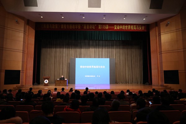 2019年12月18日下午,我校《形势与政策》课程专题教学暨第115期“嘉量讲坛”在嘉量大会堂举行,著名军事专家、海军网络安全和信息化专家咨询委员会主任尹卓将军应邀作了题为“变动中的世界格局与安全”的报告。校党委副书记程刚主持报告会,我校师生及下沙片区高校校际干部联合培训班学员共1200余人参加了报告会。