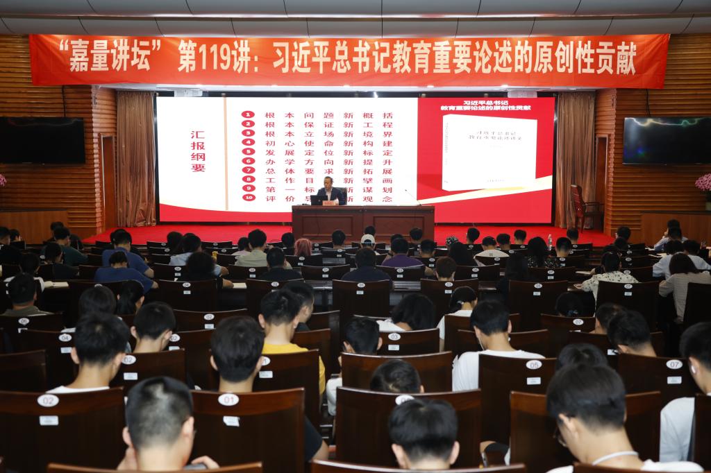 5月12日下午,新疆大学党委常委、副校长王占仁教授应邀做客“嘉量讲坛”,为我校师生作了“习近平总书记教育重要论述的原创性贡献”专题报告。校党委委员、组织部部长王斌锐主持报告会,机关党委全体党员,新进教师代表、学生代表等200余人参加报告会。