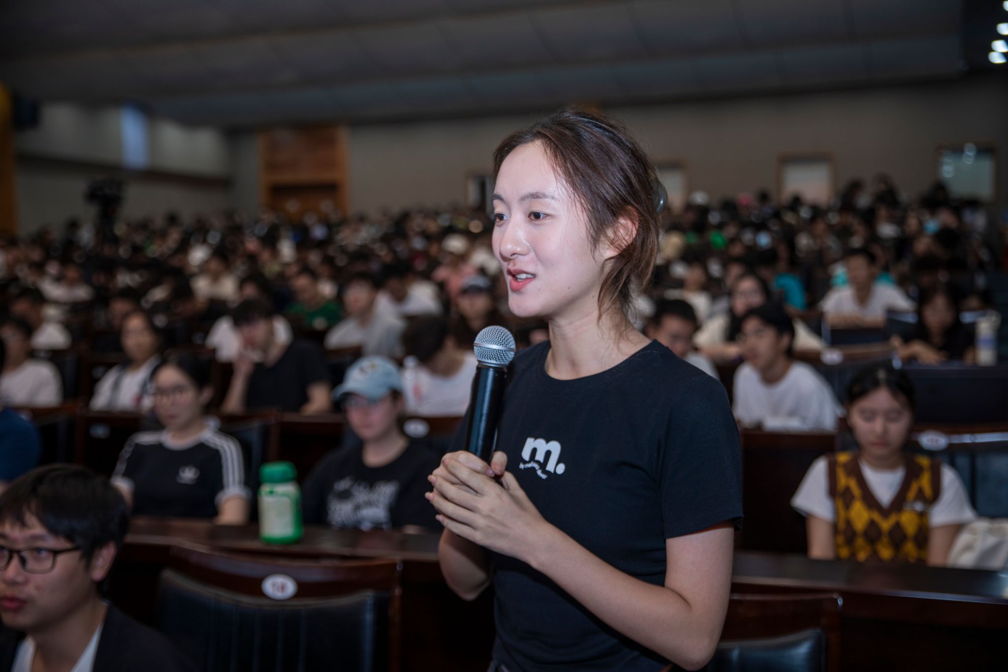 黄峻博士的宣讲让在场的师生深受感动,互动交流环节,学生们纷纷表示要以黄旭华院士为榜样,学习他的爱国情怀和科研精神,并向黄峻博士献花表示对黄旭华院士的崇敬与爱戴之情。