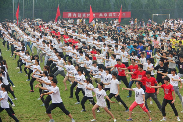 一场气势磅礴的太极拳大型团体汇演拉开了首届春季运动会的帷幕。在北操场、方圆广场、启明广场、日月湖畔,3518名14级学生以班级为单位,同时打起了柔和、缓慢、轻灵的太极拳。同学们以这样的方式为学校春季运动加油呐喊,同时号召全校学生积极锻炼身体,不做“恋屏族”。