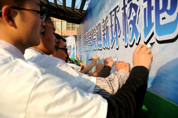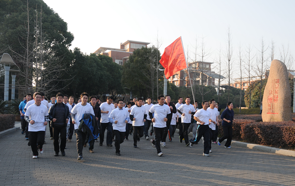 起始于2009年的迎新环校跑活动,在每年元旦过后的第一个工作日下班前举行,现已成为我校迎新年的传统项目。“跑步虽容易,环校也不难,一年就一次,且跑且珍惜。”爱校当油然而生发于心,心畅则诚;爱校当脚踏实地践于行,体健则达。