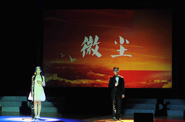 经过初赛和复赛的激烈角逐,共有12支学院代表队站在了决赛的舞台上,他们和个人赛的前三名一同演绎了一场歌颂抗日战争艰辛历程的历史朗诵剧。