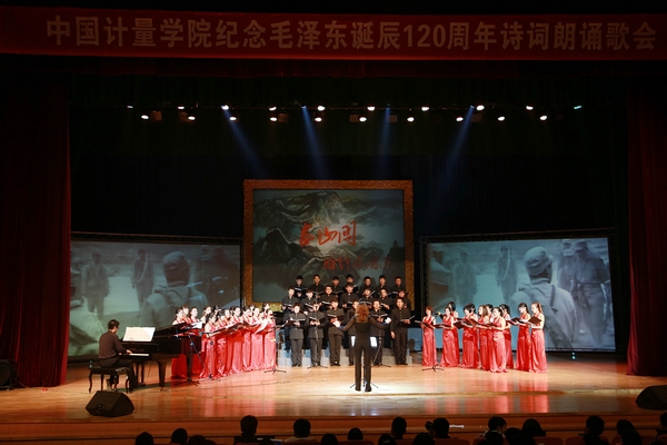 12月15日晚,嘉量大会堂人头攒动、气氛热烈,中国计量学院纪念毛泽东诞辰120周年诗词朗诵歌会在这里举行。校党委书记胡建成、副书记陶伟华莅临现场,与全场1200余名同学一起欣赏了这一场精彩的表演。