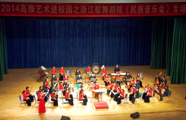 3月25日晚,2014高雅艺术进校园之浙江歌舞剧院《民族音乐会》专场在嘉量大会堂隆重上演。林建忠校长携1200余名师生观众一同欣赏了本场晚会。