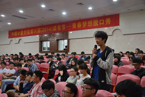4月17日,青春梦想脱口秀“青春正能量,有梦就去追”为图书馆主办的中国计量学院第六届读书节活动拉开了序幕。活动嘉宾、浙江卫视主持人陈欢的到来受到大家的热烈欢迎,90分钟的演出非常火爆,现场笑声连连,掌声雷动。