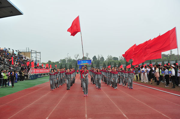校党委副书记陶伟华致开幕辞。他首先代表学校对本届运动会的召开表示热烈祝贺,对在运动会筹备工作中付出辛勤劳动的师生和全体运动员致以诚挚的问候。陶伟华总结了我校过去一年在体育教学、竞技体育和群众性体育活动中取得的成绩。他指出,学校坚持把“生命安全教育”的理念贯穿于教学全过程,把生存训练纳入体育教学内容,以身体素质练习为基础,注重学生安全意识和安全技能的获得与掌握,充分展示了我校体育教学特色。学校重点发展传统优势项目,学生体育竞技水平进一步提高,在第十三届全国大学生田径锦标赛中获得了撑杆跳高水平特招组第三名、十项全能第一名和第三名、铁饼第三名的优秀成绩,在2013年浙江省田径精英赛上获得了2块金牌、4块银牌、5块铜牌,在2013年浙江省大学生女篮联赛暨第十六届CUBA浙江赛区预赛中取得了历史最好成绩第三名。