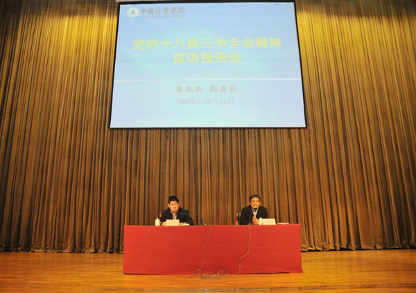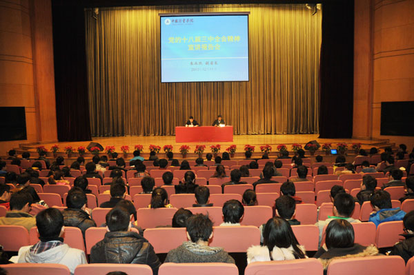 12月11日下午,浙江省副省长朱从玖来我校作党的十八届三中全会精神宣讲报告。学校领导班子成员、全体中层干部、全体思政理论课教师、全体辅导员,部分学生党员约1200人参加了报告会。报告会由校党委书记胡建成主持。