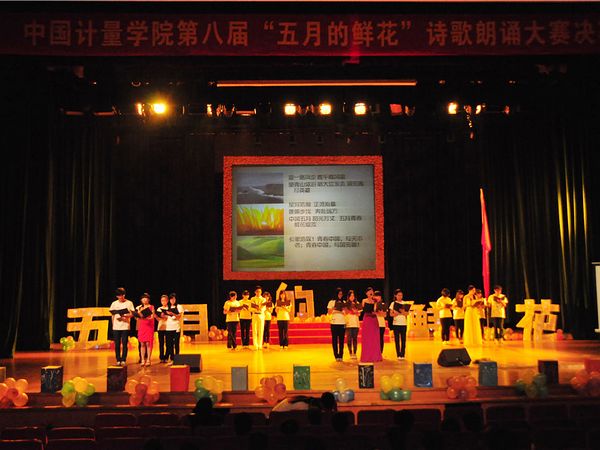 5月22日晚18:00,由校团委主办、量院之声广播台承办的校第八届“五月的鲜花”诗歌朗诵大赛在嘉量大会堂举行。