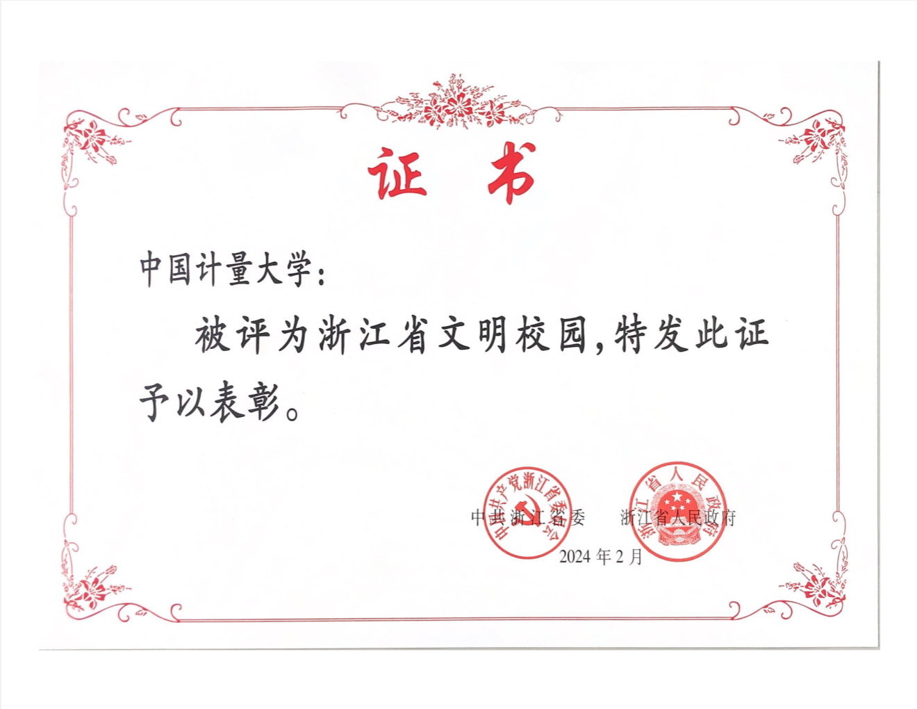 近年来,学校对照文明校园“思想道德建设好、领导班子建设好、教师队伍建设好、校园文化建设好、优美环境建设好、活动阵地建设好”的标准持续发力,涌现出全国高校黄大年式教师团队、全国五四红旗团支部、省五一劳动奖章、省“三育人”岗位建功活动先进个人、省“最美教师”、省教育系统“最美志愿者”、省抗疫先进个人等一批先进集体和个人。学校获批全国计量文化和科普资源创新基地,入选“浙江有礼·四个一百”典型展示“有礼单元”名单,《“精思国计 细量民生”——“计量文化”育人体系的构建与实施》等3个项目获评教育部高校思想政治工作精品项目,《文脉千秋 儒润当代——中国计量大学持续9年倾力打造“中国文化节”》获评第四届全国高校“礼敬中华优秀传统文化”项目,原创音乐舞蹈史诗《千秋计量》入选浙江省高校原创文化推广行动作品,实现了校园文化文明“双繁荣”。
