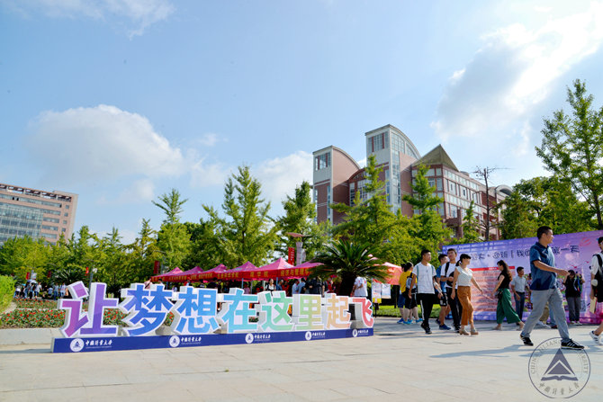 在中间的校名石处,新生可以拍摄“我和中量大的第一张合影”。值得注意的是,从校门口启程的红色地贴,特地被制作成了标尺的形式,结合了中量大的特色。“我印象最深的就是学校准备的迎新标语了。”来自电子信息A5班的李明翰说。在地贴标尺上,每隔固定刻度便有学长学姐送给新生的“嘱托”:“大学生应该有大学生的样子”、“谁说下雨天不军训”、“愿你们摆脱冷气,只是向上走”、“明德至诚,行健自强”、“启明晨读,梦溪暮谈”……