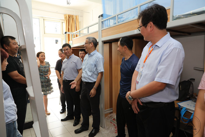 校党委书记张土乔、党委副书记程刚、副校长葛洪良和相关部门负责人一起来到迎新现场,向新生和家长表示欢迎和问候,向工作人员表示慰问。他们走进学生寝室,了解住宿情况。张土乔表示,学校为新生的到来做了充足的准备,对学生未来四年的大学培养做了精心的规划。他亲切地询问了19工业工程1班的白春英家在哪里,经济上是否有困难。来自石河子的新生家长表示,希望学校对孩子严加管理,可以让家长放心把孩子交给学校。