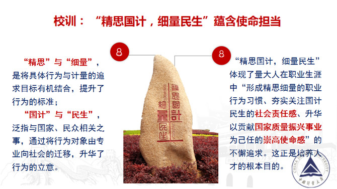 新中国成立70周年,由青年的风华正茂到壮年的砥砺前行,一言一行尽显大国风范。我校建立41年,则像一位初出茅庐却已雄姿英发的少年,为着时代复兴大任破浪扬帆。“精思国计,细量民生”的校训体现了量大人在职业生涯中“形成精思细量的职业行为习惯、夯实关注国计民生的社会责任感、升华以贡献国家质量振兴事业为己任的崇高使命感”的不懈追求。“这正是我们培养人才的根本目的。”张土乔说。