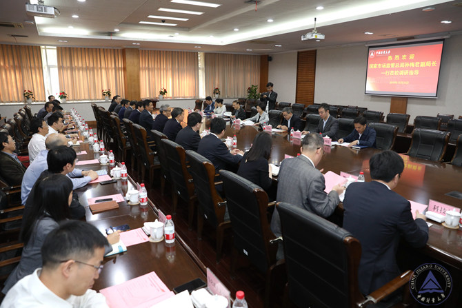 在听取了校党委书记张土乔、校长宋明顺对学校办学历史、办学特色和办学成就的介绍后,孙梅君表示,由衷地为学校40多年来建设发展所取得的成绩感到欣慰和欣喜,并用“独一无二、特色鲜明、有标有准、有声有色”四个关键词概括了对我校的第一印象。她指出,中国计量大学在计量、标准、质量、法律、管理和检验检测等方面有着鲜明的办学特色,与市场监管系统始终血脉相连。市场监管系统始终关心支持学校的改革与发展。总局也将一如既往地关心支持中国计量大学,推动学校实现更好更快发展。