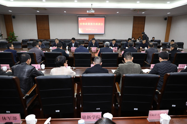 在校党政班子成员,各相关职能部门主要负责人,各学院师生代表共50余人参加会议。