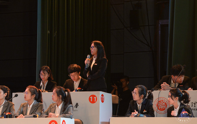 决赛在12所高校之间展开,现场气氛紧张热烈。我校参赛队员17法学2班赵栖栖、17汉语言2班石海彤、17生工1班王俊文稳扎稳打,认真思考,谨慎作答,以满分成绩通过了个人必答环节。