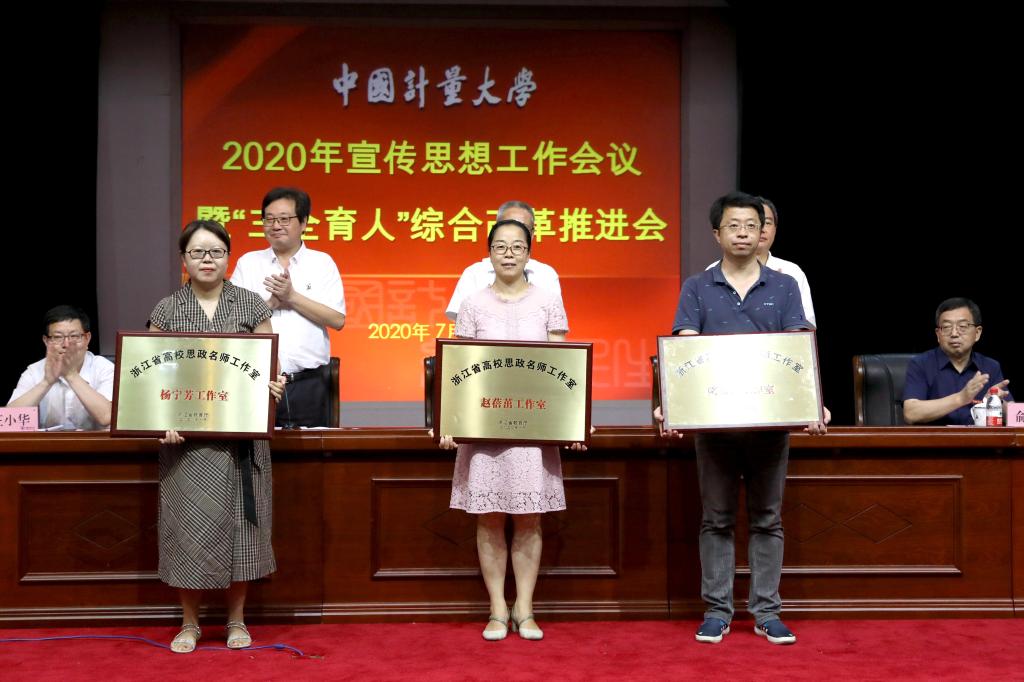 会上,进行了省高校思想政治理论课名师工作室授牌仪式,党委书记张土乔,党委副书记肖刚、程刚向赵蓓茁工作室、隋金波工作室和杨宁芳工作室等三个浙江省高校思政名师工作室主持人授牌。