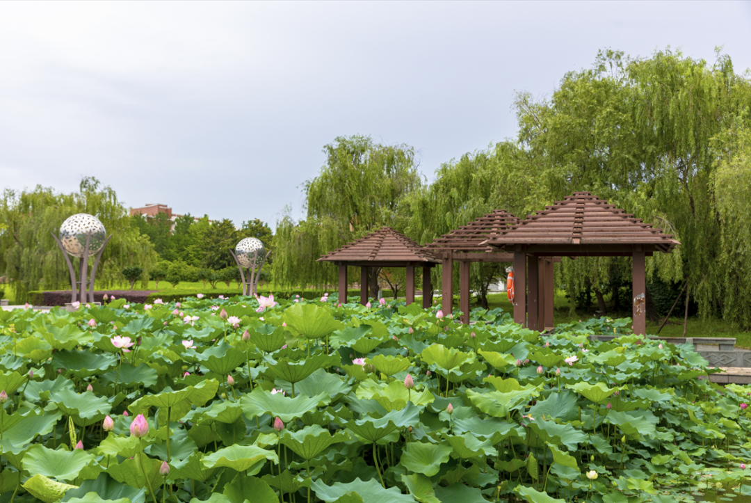 水域景观。日月湖坐落于校园中心地带,含映日月星辰。湖名意取东汉曹操《观沧海》“日月之行,若出其中;星汉灿烂,若出其里。”象征中国计量大学有容乃大,包举宇内。日月湖四季清波映带左右,楼宇亭榭环映湖中;一泓碧水灵气四溢,友鱼爱莲咏鹅怡人。移步换景,夹岸杨柳依依,环湖倒影憧憧,实为学校师生最爱。