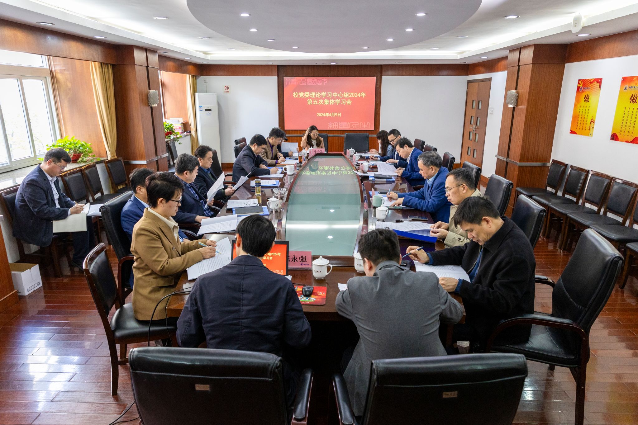 4月9日下午,中国计量大学党委理论学习中心组举行集体学习会,专题学习习近平文化思想和《浙江省优化营商环境条例》。校长、党委副书记徐江荣主持会议,校党政领导班子成员参加会议。