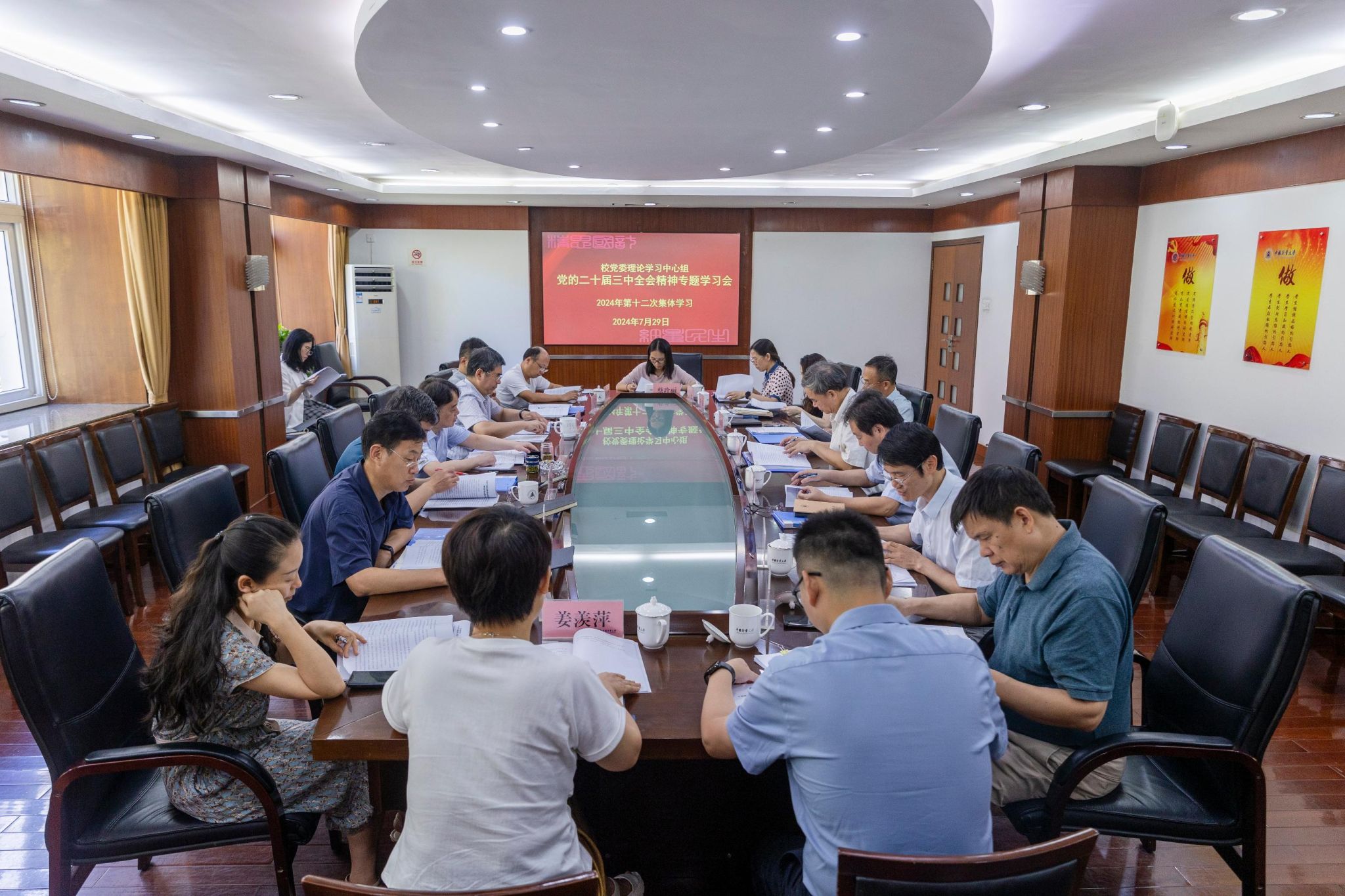 7月29日上午,校党委理论学习中心组举行集体学习会,专题学习党的二十届三中全会精神。校长、党委副书记徐江荣主持会议并讲话,校党政领导班子成员参加会议。