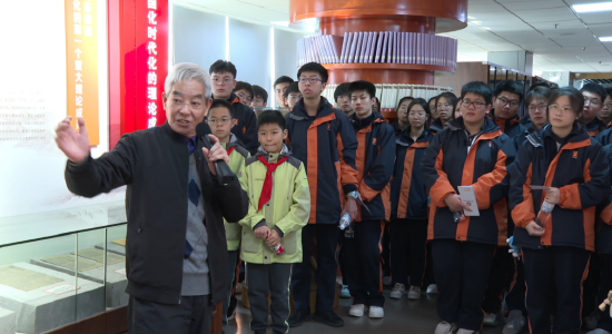 “1949年2月17日,浙东人民解放军第二游击纵队攻克三门县城海游镇与亭旁镇。三门县成为浙江第一个解放的县城。5月3日,杭州守敌大部逃窜,杭州宣告解放……”11月28日,“共和国足迹·浙江印记——庆祝新中国成立75周年全省革命文物巡展”在中国计量大学开幕。学校银龄教师毕晓光作为巡展首场宣讲人,正在展板前深情讲述新中国成立以来浙江省发展进程中的动人故事。来自中国计量大学、杭州市第九中学、杭州市采荷第一小学的百余名大中小学生通过一件件革命文物和时代见证物的照片,回望自新中国成立以来,浙江在社会主义革命、建设和改革中的辉煌历程、非凡足迹,感受那段峥嵘岁月。