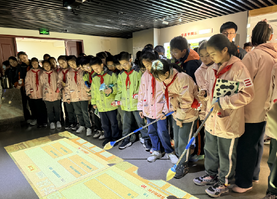 “做新时代的好少年,下列说法错误的是?”“办好中国的事情,关键在什么?”大型光影问答系统互动装置前,同学们热情参与,争先恐后作答;跟随讲解员的脚步,同学们认真聆听,感悟真理的力量。来自杭州市采荷第一小学的胡家齐认真记录着墙上的名人名言,“之前我以为马克思主义是马克思一个人创造的,今天知道了马克思主义的创立与发展历程,学到了很多新奇的知识,让我大开眼界。”