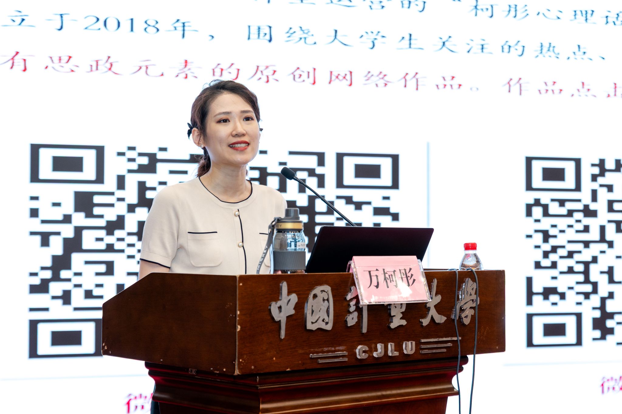 万柯彤指出,在互联网时代,网络思想政治教育的重要性日益凸显,高校教师应顺势而为,积极主动地利用网络平台拓展思想政治教育的广度与深度。她围绕“如何提升网络思想政治教育的吸引力”这一主题,鼓励老师们通过增强议题吸引力、深化话语感染力、强化视觉冲击力、提升形象感召力等形式,打造沉浸式教育场景,构建“有温度”的网络思政模式。万柯彤还立足于工作实践、教育理念和宣讲形式,在“协同联动”、“精准滴灌”、用“小切口”阐释“大主题”等经验的分享中,介绍了自身所负责的网络思政名师工作室建设经验与成果。
